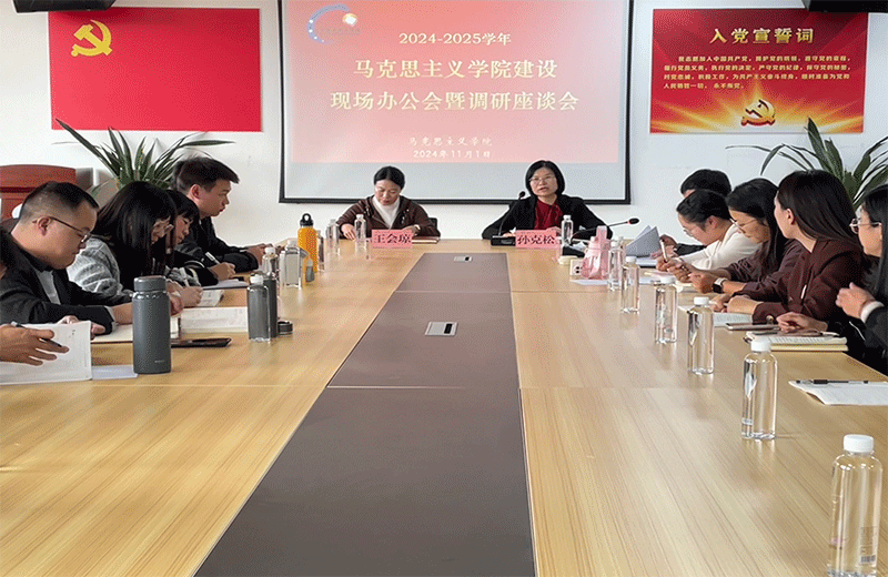 2024年11月7日下午,学校党委书记邱言锋到马克思主义学院召开现场办公会暨调研座谈会,与马克思主义学院全体思政课教师进行座谈交流,深入了解学院发展情况并进行现场办公。会上,马克思主义学院王雄院长就学院党组织建...