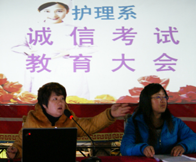 为了让我系新生了解今年会期末考试管理办法,正确对待期末考试,认识诚信考试的重要意义,诚信的参加考试,真实的检测出自己本学期学习的情况。护理系于2011年12月30日在学院多功能厅组织召开了期末诚信考试教育大会,会...