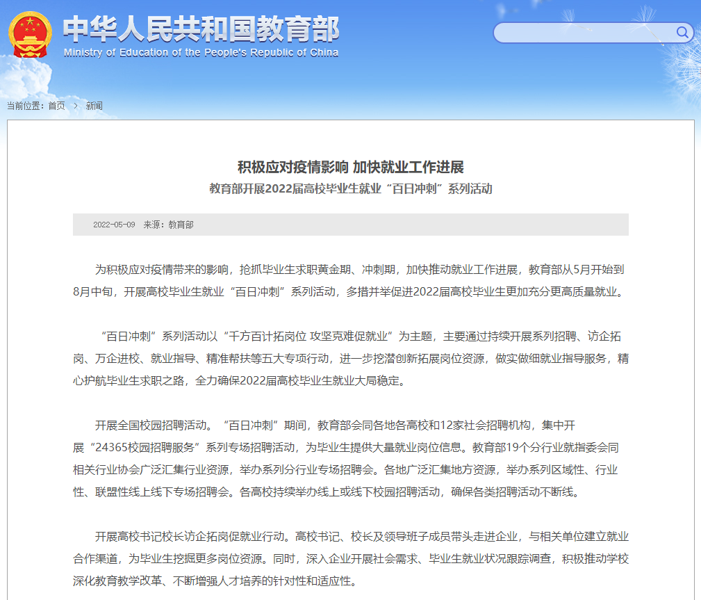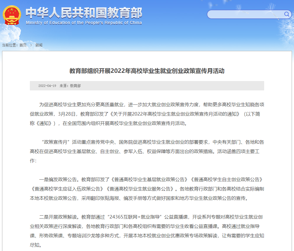 教育部组织开展2022年高校毕业生就业创业政策宣传...