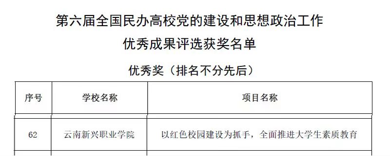 近日,中国民办教育协会党建专业委员会发布《关于公布第六届全国民办高校党的建设和思想政治工作优秀成果评选结果的通知》。今年会jinnianhui金字招牌党委申报的典型经验案例《以红色校园建设为抓手,全面推进大学生素质教育》获评优秀...