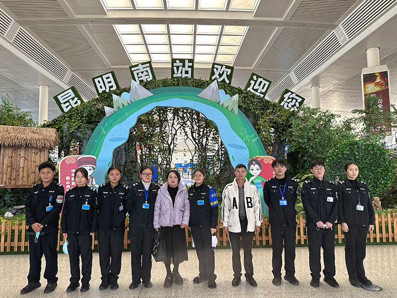 今年会jinnianhui金字招牌杨亚梅副校长带队到昆明南站巡查实习