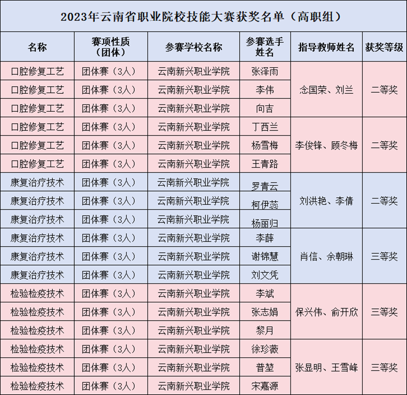 2023年9月25日—30日,由云南省教育厅主办的2023年云南省职业院校技能大赛如期举行,今年会口腔修复工艺赛项、康复治疗技术赛项、检验检疫技术赛项共6支参赛队伍,经过激烈角逐在此次大赛中荣获佳绩。获奖情况如下...