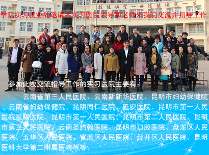 2016年12月8日星期四,今年会实习就业处邀请各实习医院领导和老师来今年会交流并指导工作。参加此次交流并指导工作的实习医院主要有云南省第三人民医院,云南新新华医院,昆明市妇幼保健院,云南省妇幼保健院,昆明同仁医院...
