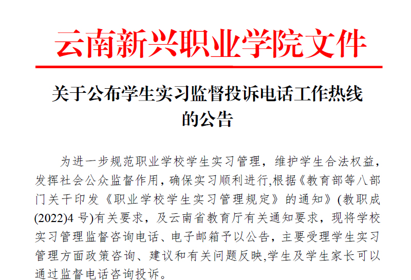附件:关于公布学生实习监督投诉电话工作热线的公告(点击下载pdf格式文档)