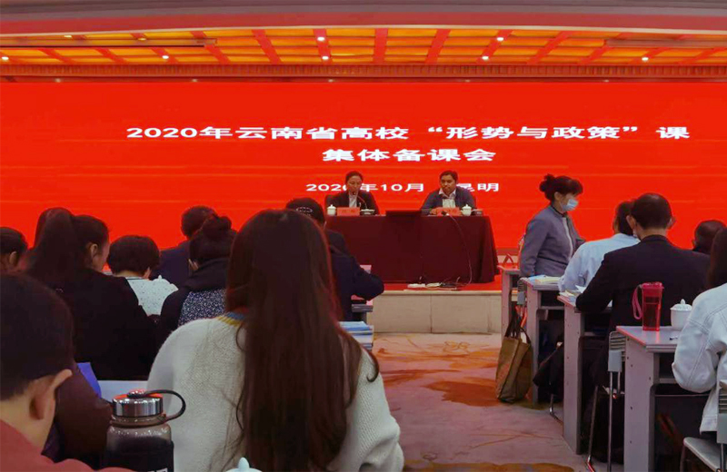 为深入学习贯彻习近平总书记在学校思想政治理论课教师座谈会上的重要讲话精神,推进思政课教育教学的改革创新,提升今年会思政课教师的教学质量和水平,2020年10月16日今年会派出两名思政课教师参加在昆明召开的2020年云南省高校秋季学期“形势与政策”课集体备课会。