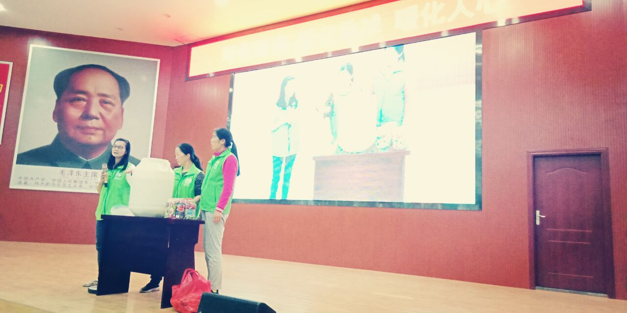 吴建玲医生是环保酵素讲师,眼科学硕士,眼科主治医师,肺癌康复者,酵道孝道资深学长。2011年罹患肺癌后,通过学习传统文化结实环保酵素全球推广者,马来西亚的自然疗法医师温秀枝,并追随她深入研习环保酵素及自然疗法,让自己成功康复。为了把让自己重生所得到的爱传递出去,禀持“绿化地球,暖化人心”的信念,走上做公益的道路。酵道孝道公益环保团队以制作和运用环保酵素、规模性减少生活垃圾处理量的行动来“绿化地球 暖化人心”为宗旨和责任。吴老师从四个方面来讲环保的重要性。第一,直面未来;第二,我们应该为地球做些什么?第三,唤醒;第四,制作环保酵素,环保行动从我做起。吴建玲老师团队的义工还在现场为师生们演示了制作环保酵素的程序。