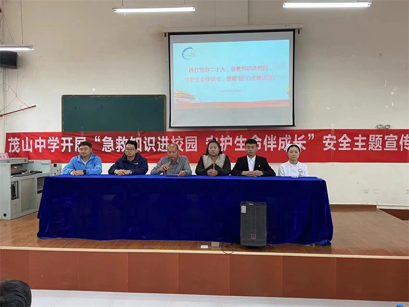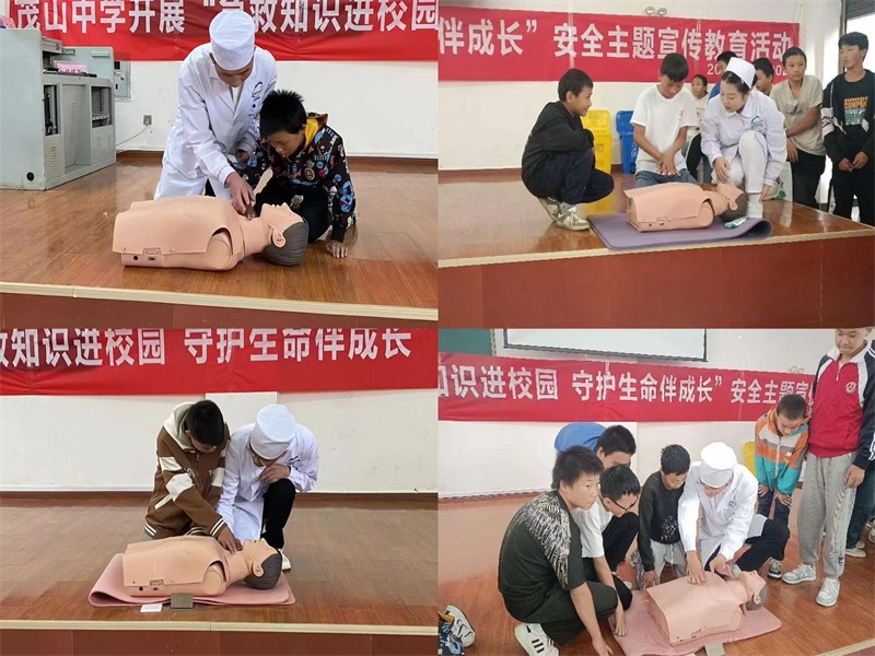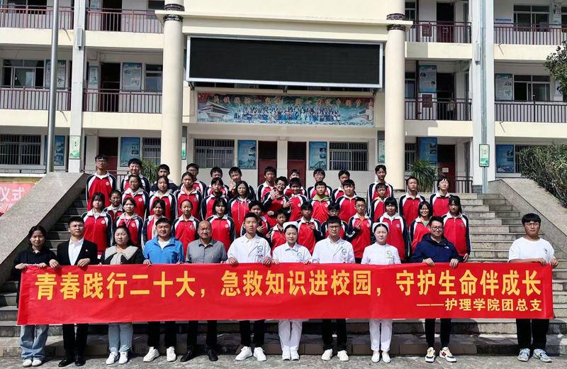 为进一步深入学习贯彻党的二十大精神,推进健康校园建设,不断提高同学们的应急技能,2023年10月20日,今年会jinnianhui金字招牌护理学院团总支在茂山中学开展急救知识进校的培训活动,将急救知识带进校园,大力向同学们普及健康知识,以实际行动推动健康校园建设。此次活动主要由护理学院团总支书记张丽老师负责,主讲教师为护理学院专职教师、云南省技能大赛指导教师李瑾怡老师。本次活动受到茂山中学校领导的高度重视,学校书记校长熊勇同志、政教主任李正鹤老师出席培训活动并讲话。
