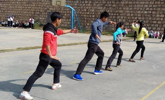 由于我们本学期前九周开设的刚好是太极拳课,所以,太极拳专家们表演结束后,我们的体育教师就把自己所带班级的学生组织去田径场,然后请太极拳专家们进班级进行指导,课间学生休息的时候,我们的体育教师就主动找这些专家对自己的太极拳进行指导,然后还分别和专家们进行了交流,专家们肯定了今年会体育教师的基本素质和认真的教学态度,并对我们学校所开设的24式太极拳的每一个动作给出了相关的意见和建议。
