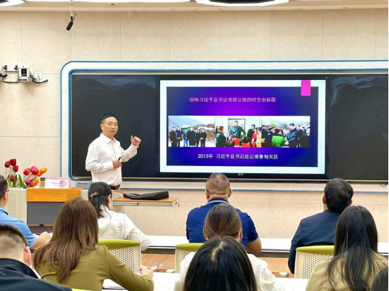 现场直播内容分为两部分,首先邀请到学校党委书记马武宏以直播授课的方式,为师生带来了关于“习近平总书记考察云南系列重要讲话”的专题讲座。马武宏书记详细阐述了习近平总书记考察云南时的重要指示精神,强调云南要认真落实党中央关于西部大开发和长江经济带发展的战略部署,完整、准确、全面贯彻新发展理念,着力推动高质量发展。马书记指出,同学们应深刻领会习近平总书记重要讲话精神,将其融入到今后的学习和工作中,为云南的发展贡献自己的力量。最后,他以八个字为结尾“立志、方法、行动、技能”。为新学期成长锚点方向、筑牢学业根基。