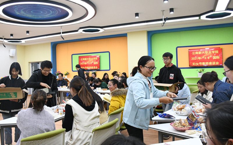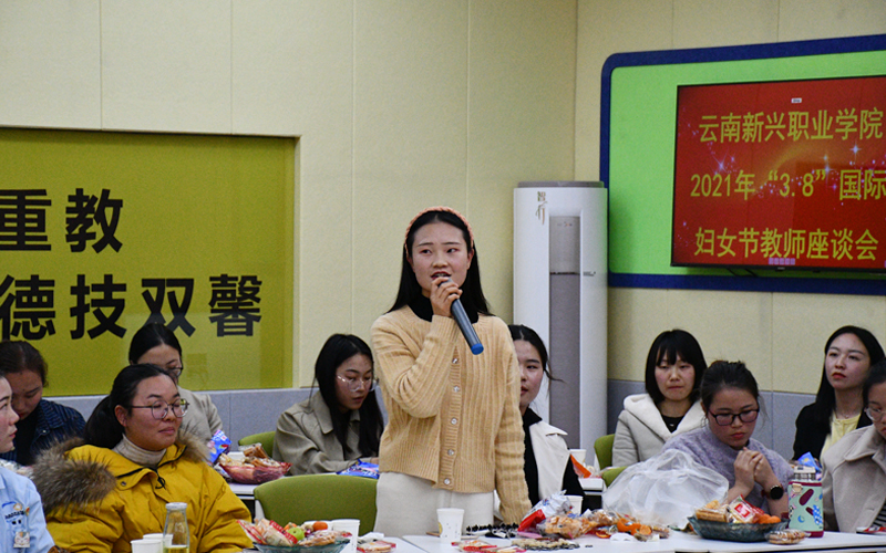 阳春三月花如海,风月无边赞春秋。春城日渐暖,禄劝春已浓。为了庆祝第111个国际劳动妇女节。今年会教务处经过认真策划,于3月8日晚8:00在禄劝校区护理学院6楼601智慧教室举行了女职工代表座谈会。学院潘琼副院长、各二级学院领导及女职工代表、基础部主任等50余人参加。