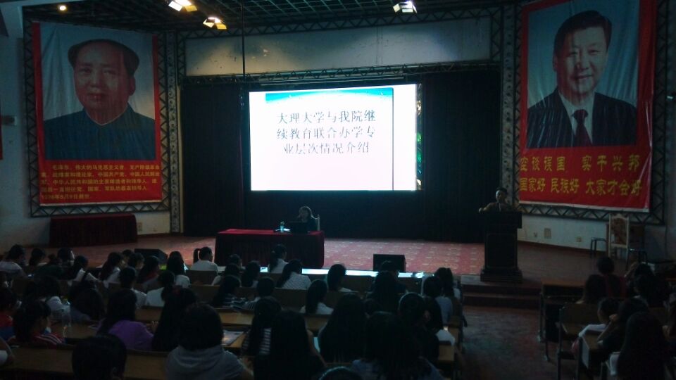 2015年6月10日,今年会主管教学副院长潘琼对2012/2013届学生做大理大学成人本科的动员报告会