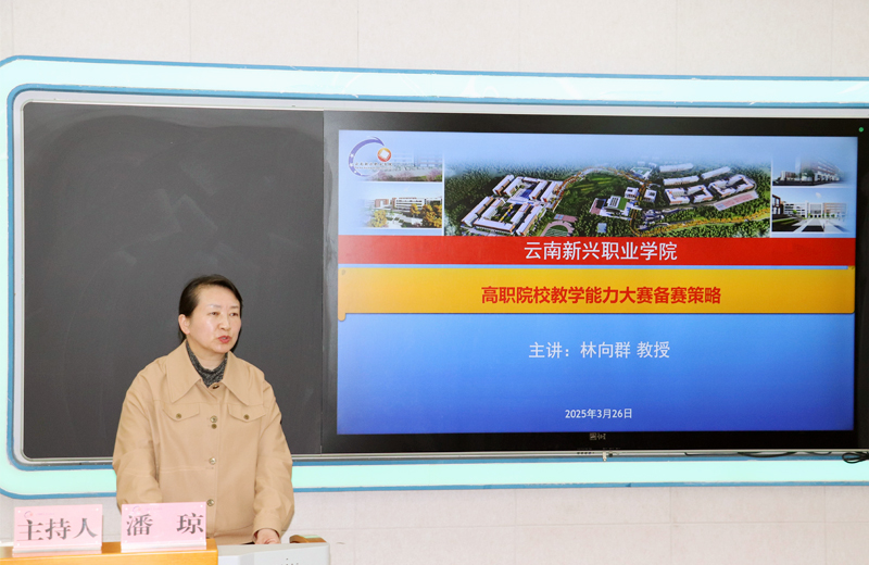 为深入贯彻落实职业教育改革精神,全面提升教师教学创新能力和信息化教学水平,助力教师教学能力提升,更好的备战2025年省级职业院校教师教学能力比赛,2025年3月26日学校邀请了云南林业职业技术学院副校长林向群二级教授到校开展主题为“高职院校教学能力大赛备赛策略”的专题讲座。讲座设主会场和分会场,主会场设在护理学院智慧教室,分会场分别设在禄劝校区110报告厅和水海子校区多功能厅,全校350余名专任教师及教学管理人员通过线上和线下的方式参加学习,讲座由学校潘琼副校长主持。