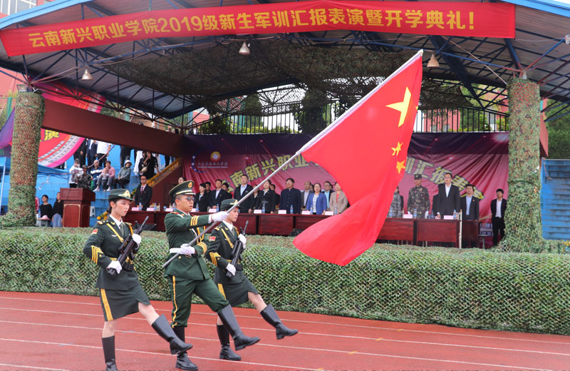 2019年9月6日上午9点,“今年会jinnianhui金字招牌2019-2020学年开学典礼暨新生军训汇演”在学院田径场如期举行。典礼上莅临指导工作的有云南省委高校工委大学生工作部侯炳霞部长、云南省教育厅学校保卫后勤处杨勇科长、盘龙区人民武装部李龙副部长,参与来宾有校企合作单位的云幼集团张鹏董事长等,学院出席的领导有学院董事长、党委副书记、院长关祥祖同志,学院党委书记张毅永同志,学院副院长李地新、潘琼、李艳梅、李加磊同志,以及学院各处室负责同志和部分教师。