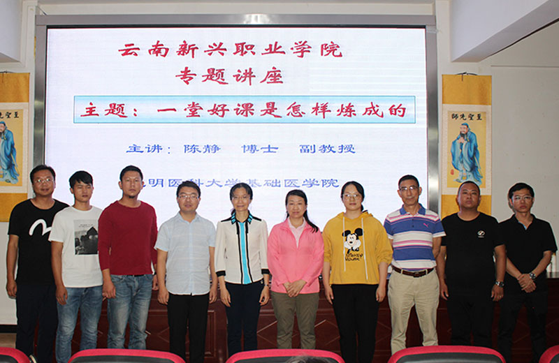 主讲人“全国首届病理生理学教师教课竞赛一等奖”、“云南省首届高校教师教学大赛特等奖”、“昆明医科大学教学成果奖一等奖”获得者、昆明医科大学基础医学院陈静副教授为全体专任教师带来了“一堂好课是怎样练成的”专题讲座。