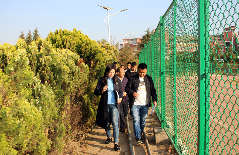 首先,检查组来到田径场,对田径场围栏,单、双杠运动场地、篮球场及周边可能存在的安全隐患进行了全面排查。