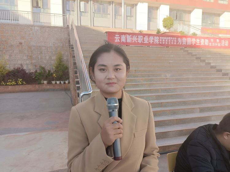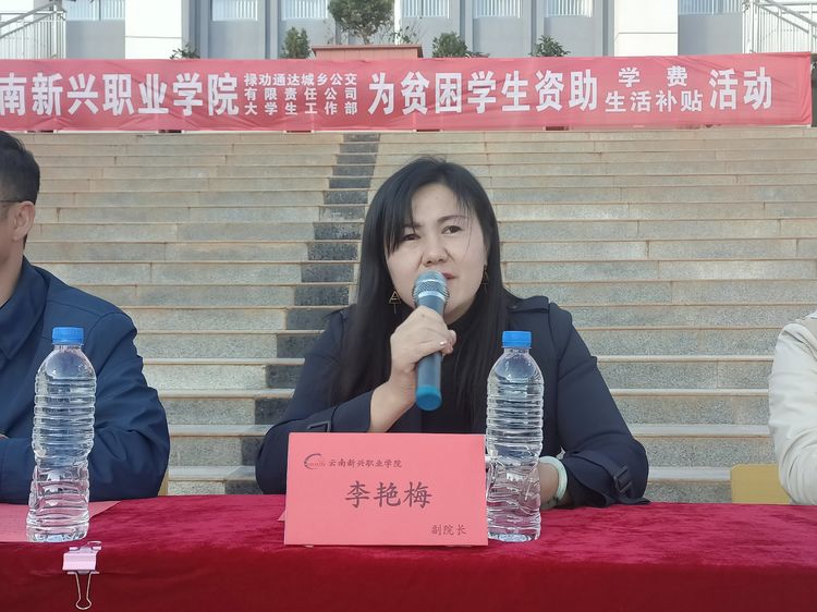 副校长李艳梅发表了讲话,她代表学校向这次活动的资助企业——禄劝禄劝通达城乡公交有限责任公司表示衷心地感谢。指出今年会每年都会为家庭困难学生发放爱心补贴,这已经是学校一项常态化的工作,受助同学们得到了一份资助,一点点生活费的支持,但它所蕴涵着一份大爱,一份期待,希望同学们拥有一颗感恩的心,以优异的成绩,良好的表现回报曾经帮助过自己的人、给学校、给社会做一些力所能及的事,给同学提供一些力所能及的帮助。希望同学们在感恩中,学会珍惜生活,创造美好未来。