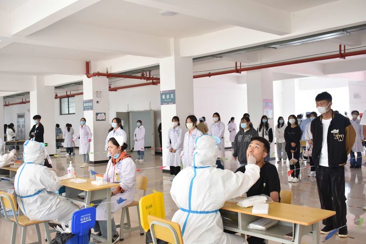 核酸采集现场组织周密,秩序井然,全体学生按学工部统一安排由各辅导员带队按照既定时间排队,错峰分批前往指定地点开展核酸检测。检测现场佩戴口罩、测量体温、扫码登记、即采即走。全体教职工、家属及后勤实体人员在指定时段,按照人数要求有序排队接受采样。学校为做好本次全员检测,专门成立了综合协调组、安全保卫组、后勤保障组、教学保障组、行政人员工作组、教学保障组等,确保本次工作顺利进行。