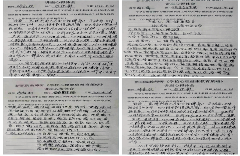 希望大家在今后工作生活中关注自己的心理健康,学会调节情绪,以积极、健康、向上的心态投入到工作中,更好地为学校、学生服务,做好教书育人这一神圣工作。