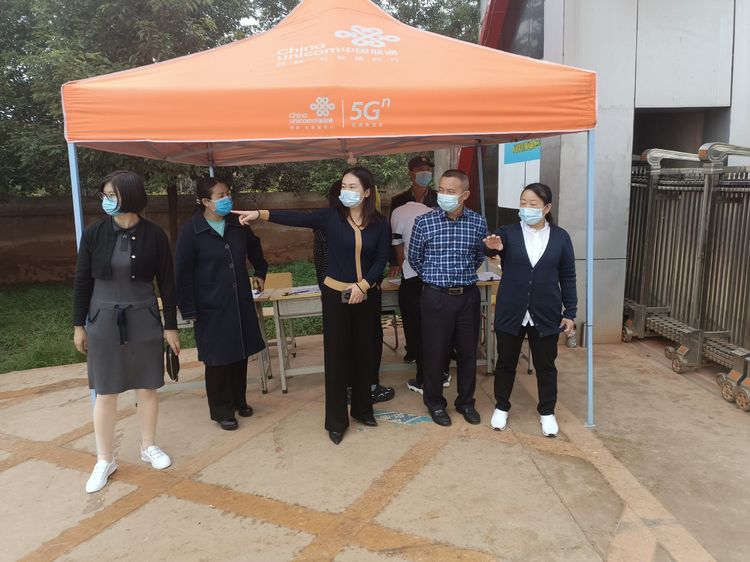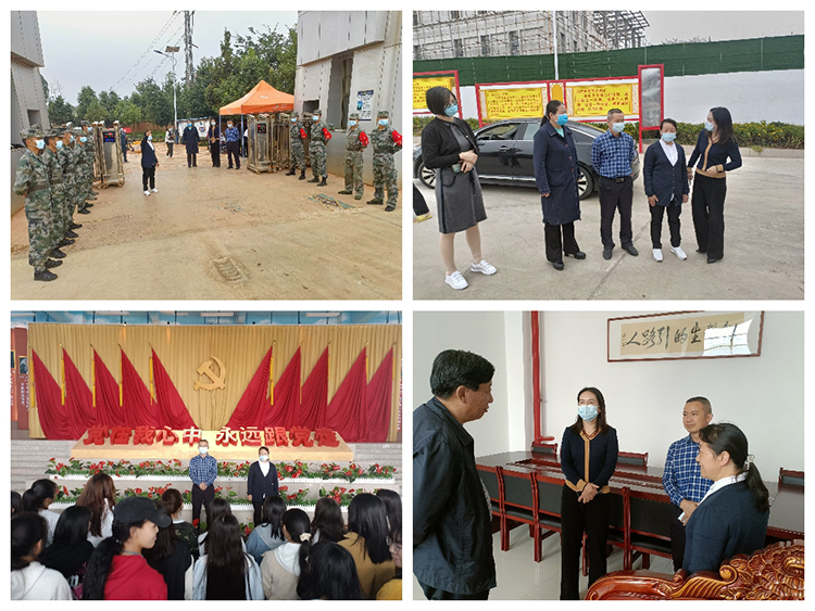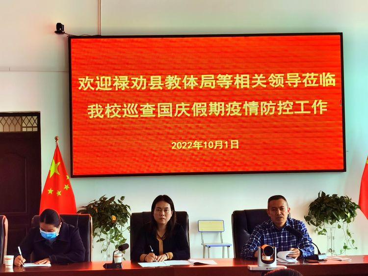 为切实做好国庆节放假期间学校的疫情防控工作。10月1日上午,禄劝县委常委、统战部长康怡、县政协副主席、教体局局长张国华、教体局体育卫生科主任潘桂丽一行莅临今年会禄劝校区检查指导疫情防控工作,今年会校长刘沧山、副校长潘琼、组织部长孙克松、党政办主任李荣富、宣传部长李汉雄、党政办副主任张元喜及部分在校中层领导陪同检查。
