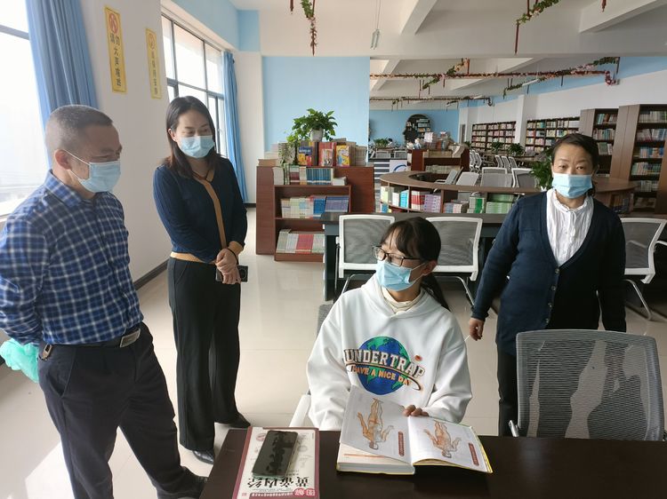 ▲领导们在学校图书馆与正在看书的2022级高职针灸推拿专业学生进行交流