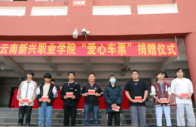 四、出席校领导向学生代表发放爱心车票