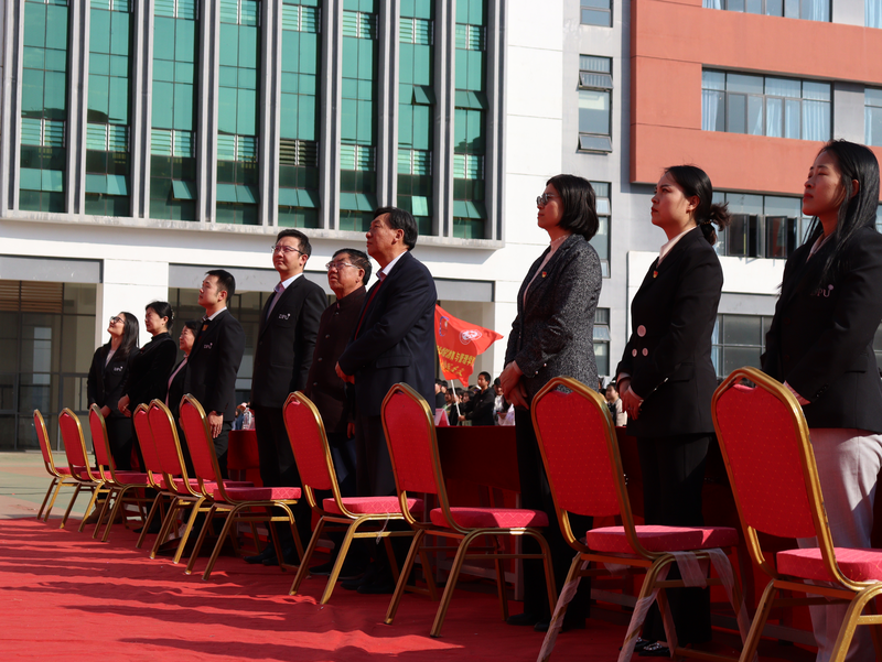 启动仪式在庄严的国歌声中拉开帷幕,全体青年学生向国旗行注目礼,当那一抹中国红飘荡在校园上空时,绚烂了天空,也让人心头肃然起敬。