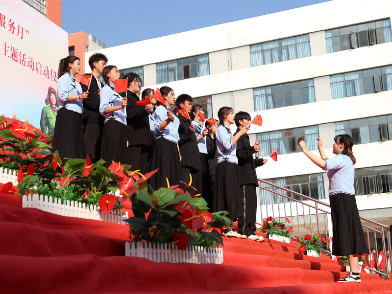 仪式上,青年音乐协会带领全校师生齐唱《学习雷锋好榜样》,同学们用铿锵有力的歌声唱响了整个校园。