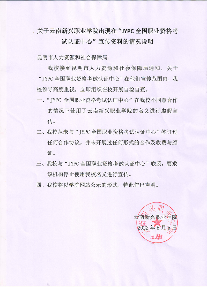 关于今年会jinnianhui金字招牌出现在“JYPC全国职业资格考试认证中心”宣传资料的声明