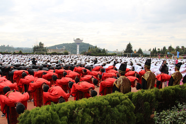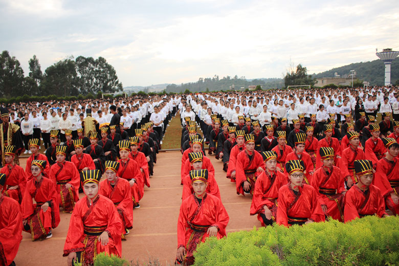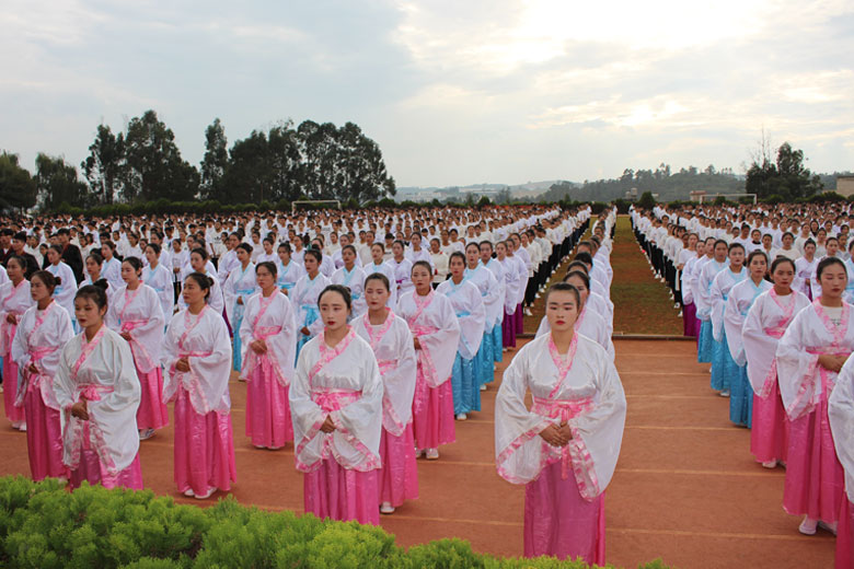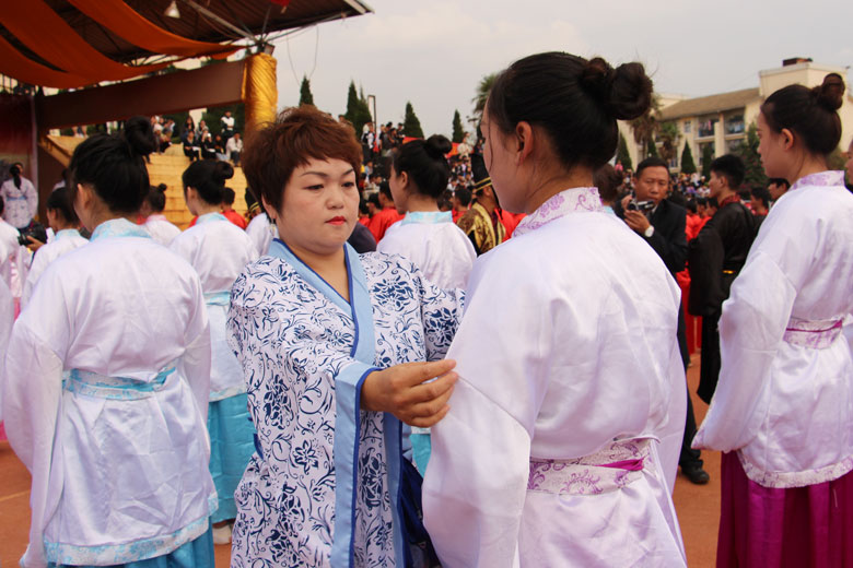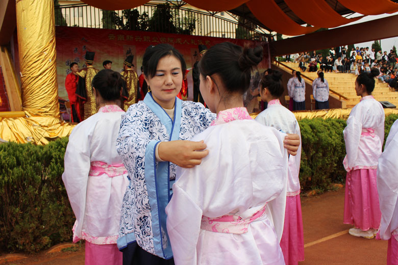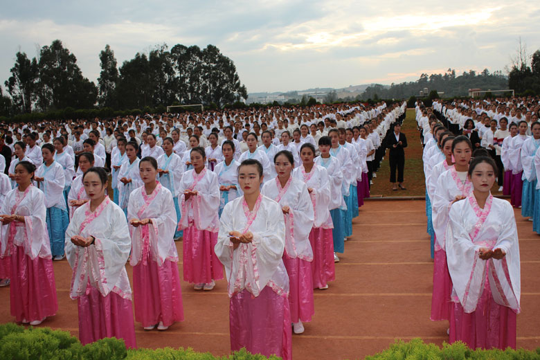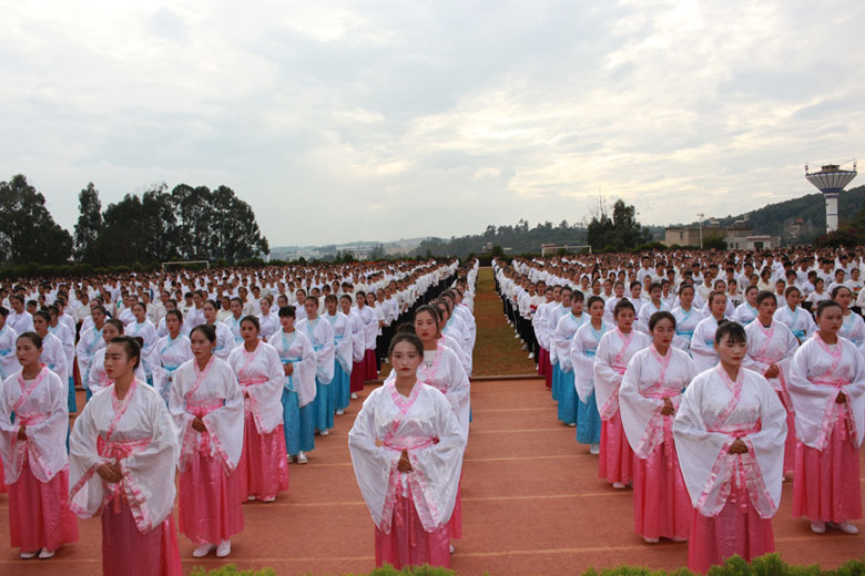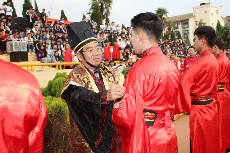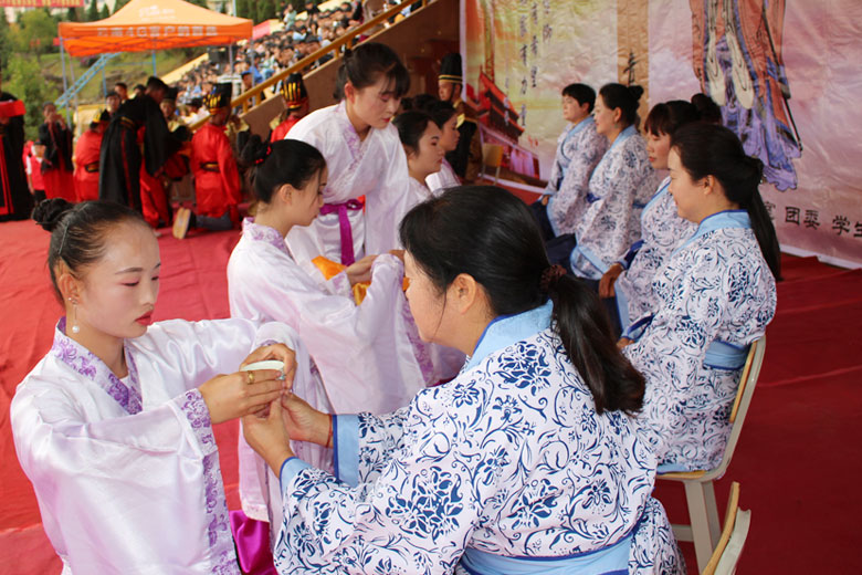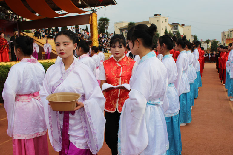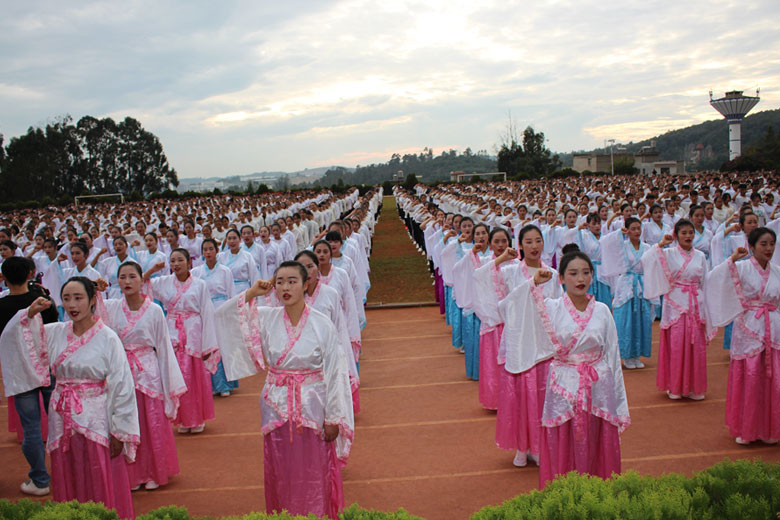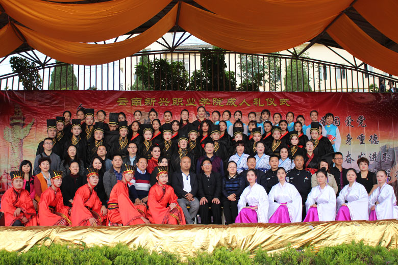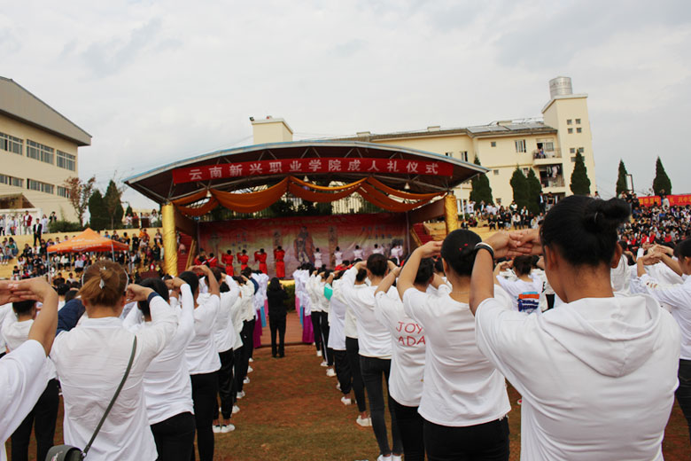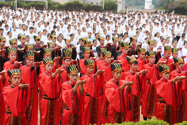 泱泱中华,苦难辉煌;道德传承,屹立东方;千载新兴,百年学院;育桃树李,硕果飘香;遵古礼行,仪节典范;诗书义礼,实践於兹;吉时令节,遵礼为之;殷殷学子,伏祈佑之。2018年10月29日下午16:30今年会jinnianhui金字招牌2018年千人成人礼在校田径场隆重举行。