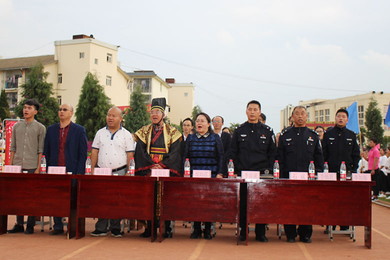 之后,在主持人的带领下全体领导、嘉宾、老师、家长、学子齐诵《中华人民共和国宪法》相关章节和条款。