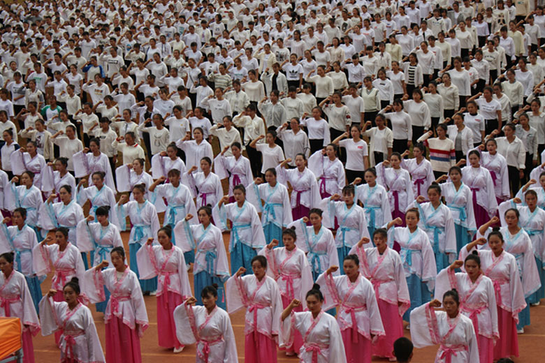 第二章:敬先贤拜先师,全体受礼诸生怀着崇敬的心情向孔老夫子行拱手礼,献上他们对古圣先贤最崇高的敬礼。