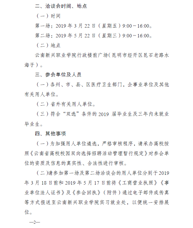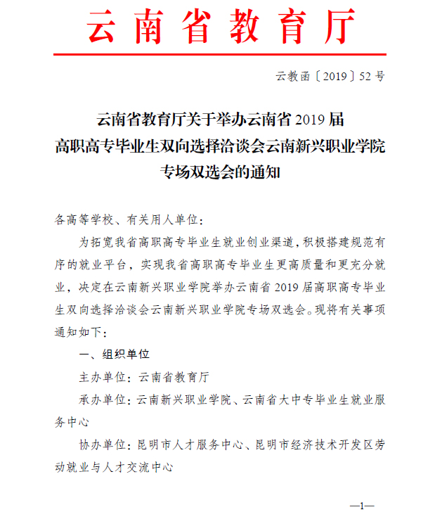 云南省教育厅关于举办云南省2019届高职高专毕业生双向选择洽谈会今年会jinnianhui金字招牌专场双选会的通知