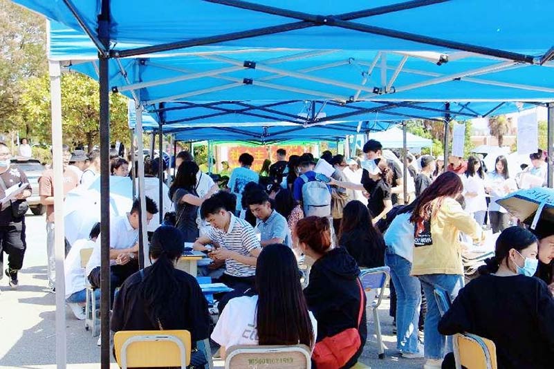 招聘会如火如茶进行,学生带着自己精心准备的简历,到现场与用人单位进行交流洽谈,积极主动了解用人单位情况,现场积极踊跃报名,投简历,寻找适合自己的岗位。