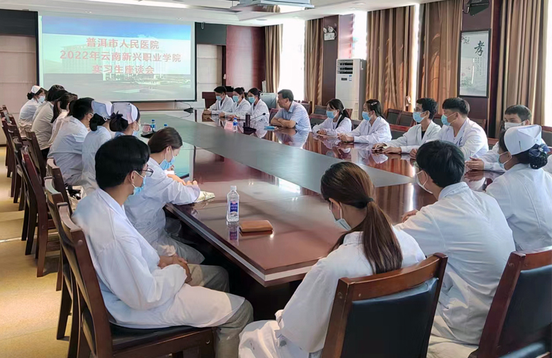 2022年9月28日上午,刘沧山校长到普洱市人民医院进行实习巡查回访单位,组织召开了实习生座谈会,普洱市人民医院科教部杨旭副主任、李雪瑜老师、赵根老师、李波老师,护理部魏敏老师出席本次座谈。