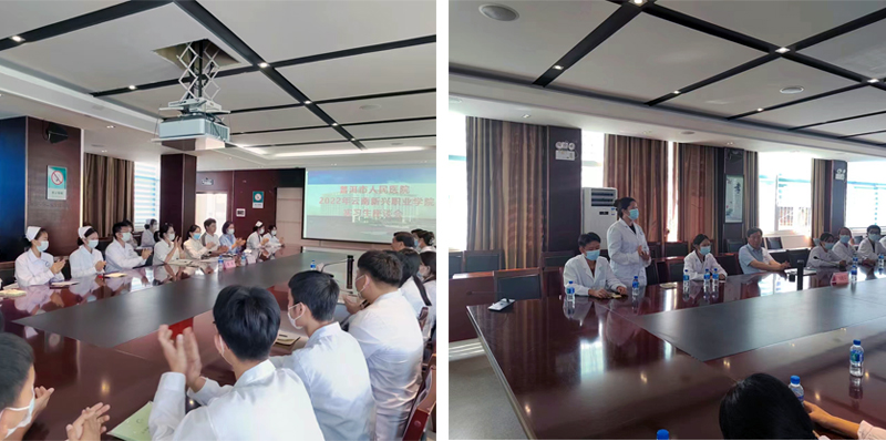 杨旭副主任对于刘沧山校长的到来表示热烈地欢迎,并对实习同学在实习期间的表现以及实习情况给予肯定。杨旭副主任指出实习是医学生向医护人员转变的桥梁,刘沧山校长的到来体现了学校对实习生的关心和重视,大学生的实习极其重要,希望实习生们将专业知识和实践能力相互结合,多提升自我的学术学业、综合技能等,让学生从低分低能到高分高能,不断成长、不断进步。
