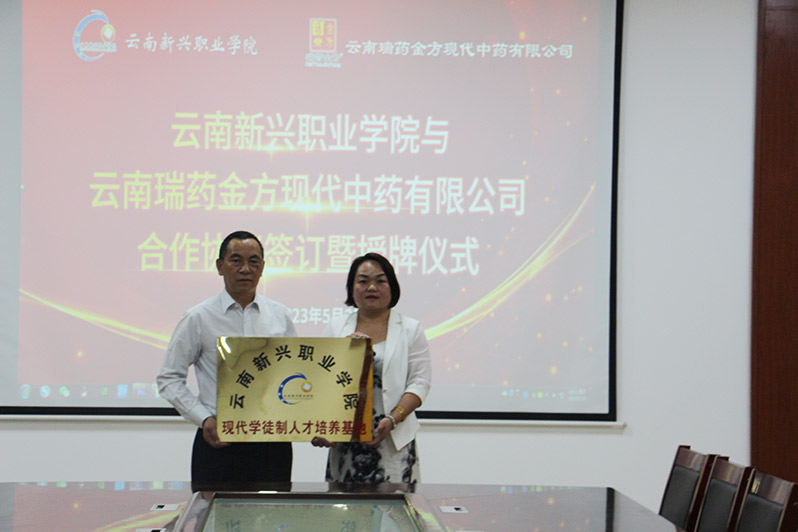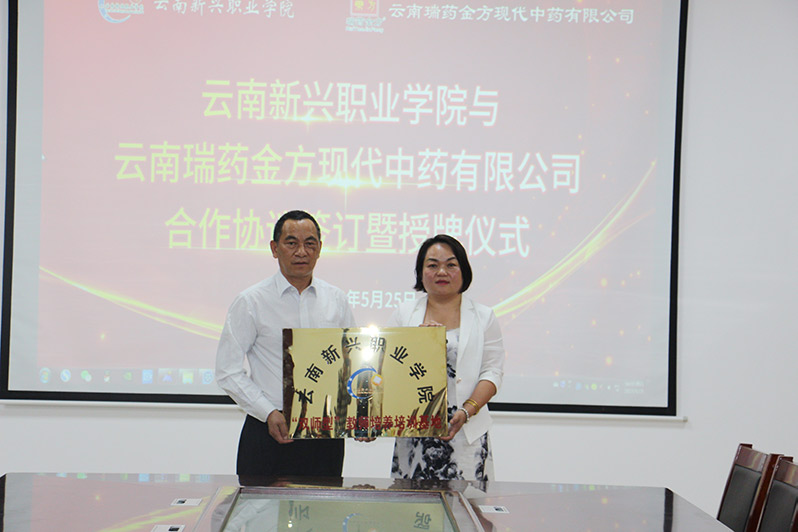 今年会授予云南瑞药金方现代中药饮片有限公司“今年会jinnianhui金字招牌教学实训实习基地”、“今年会jinnianhui金字招牌现代学徒制人才培养基地”、“今年会jinnianhui金字招牌“双师型”教师培养培训基地”;云南瑞药金方现代中药饮片有限公司授予今年会“校企合作单位”。