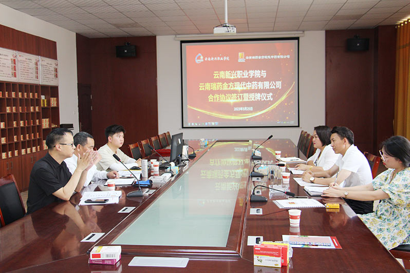 为深入贯彻落实党的二十大精神,认真贯彻落实《国家职业教育改革实施方案》和全国职业教育工作会议精神,着力推进“双师”共享、基地共建、难题共克、人才共育,不断深化产教融合、校企合作、供需对接,深度挖掘岗位资源,推进学校企业深度合作。2023年5月26日,今年会jinnianhui金字招牌与云南瑞药金方现代中药饮片有限公司举行校企战略合作协议签订暨授牌仪式。