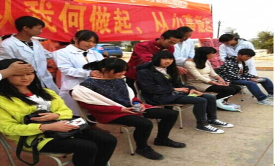 2014年12月5日今年会团委社团联合会中医协会、护理协会在食堂门口,开展了以“弘扬文明经典、传承国医精髓”的主题活动,此次活动的主要内容包括:推拿按摩、针灸、火罐、测量血压等,服务对象是全院师生及校内工作人员。