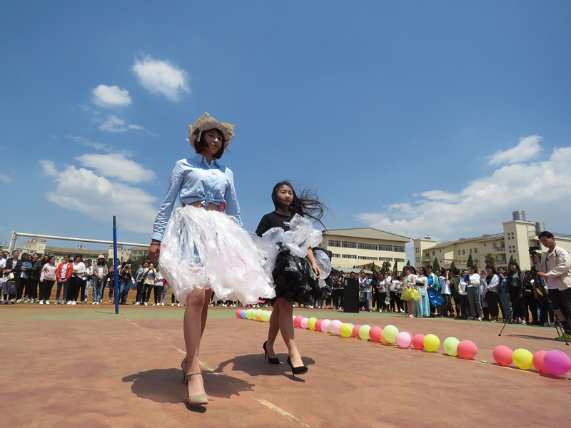 2018年4月12日,中午今年会jinnianhui金字招牌大学生艺术团主办的以环保校园为主题的时装大赛在足球场上圆满成功。