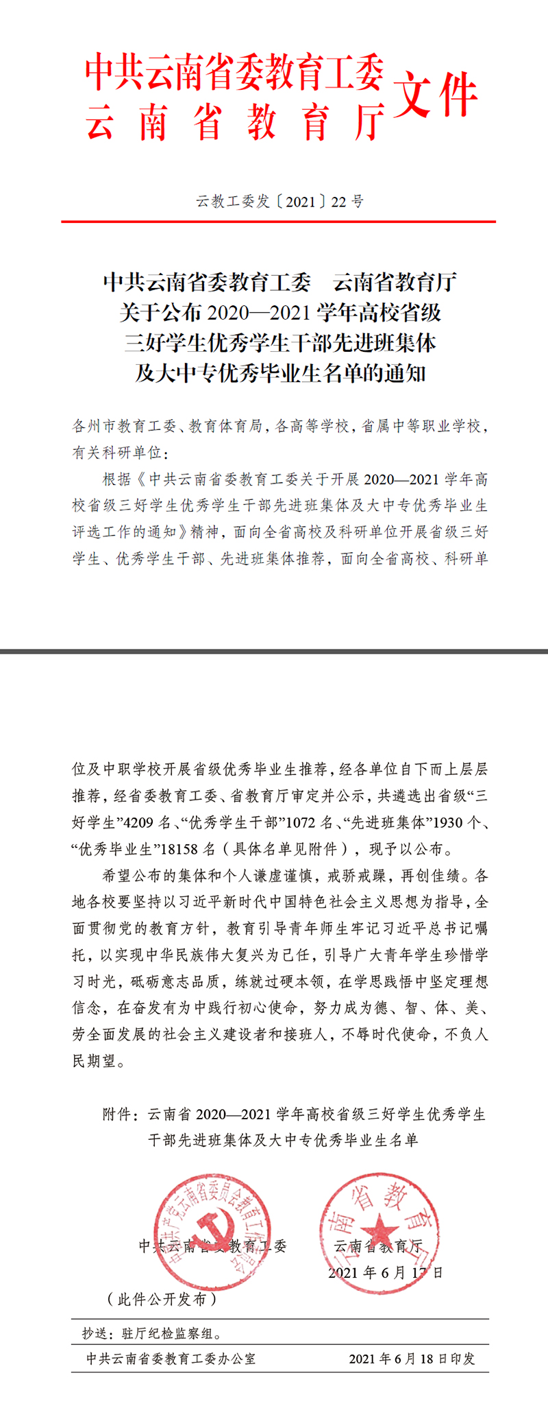 【喜 报】:今年会jinnianhui金字招牌2020-2021学年省级三好学生、优秀学生干部、先进班集体及大中专优秀毕业生名单揭晓