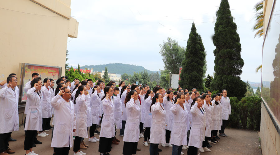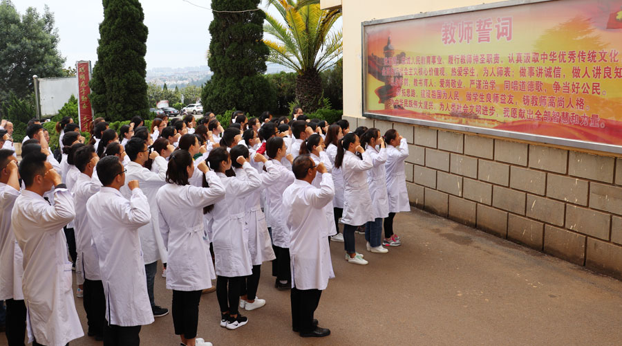 2018—2019学年上学期学期初,医学康复学院为了提高教师教学纪律意识,积极开展教师的教学纪律、教学方法等各种培训指导,目的是为了更好的促进教师教学质量的进一步提高,有良好的教师行为规范,保证整个教学秩序的顺利进行,由杨炳金副院长带领全体教师重温教师誓词,并作庄严的教师誓词宣誓,通过宣誓促进教师们牢记教师使命,在以后的教学工作中能够正确树立教师教书育人的意识理念。