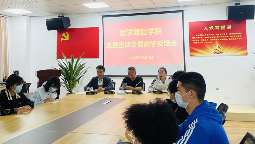 为及时了解和收集医学康复学院教师课程教学工作情况,加强教学质量的监控评价,更好的了解各专业学生学习情况、以及学生目前存在急需解决的问题,促进我二级学院更好的服务好各专业学生;充分发挥学生在学校教学及教学管理中的参与作用和自我管理、自我教育的主体作用,建设良好的教风、学风和校风,医学康复学院组织召开各班班委座谈会暨教学信息反馈会。